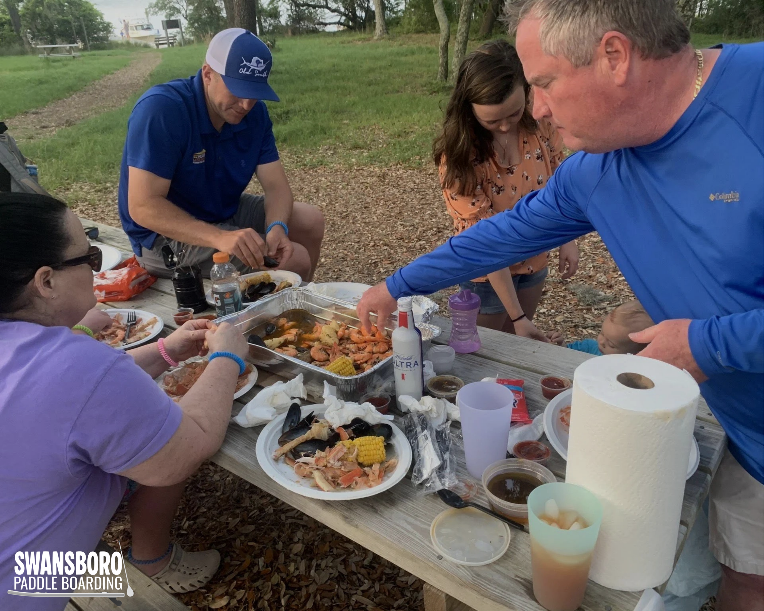 This 3 hour, private island, boat dining experience begins with a scenic cruise through the beautiful waters surrounding Swansboro as we transport you to one of the area’s stunning nearby islands. Once we arrive, you’ll step off the boat to find your dining setup arranged and customized to fit your party’s needs — creating a relaxed, coastal atmosphere you won’t find at any traditional restaurant.